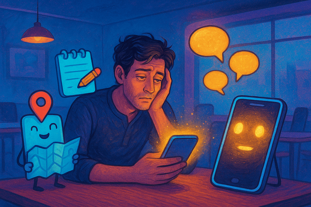 Esta semana, escolhi escrever um texto que mistura humor ácido e um toque de crítica social. Daquele jeito quase imperceptível que faz o leitor rir primeiro e pensar depois. A verdade é que estamos cercados por aplicativos e telas, cheias de notificações que moldam nossa rotina mais do que gostaríamos de admitir. Por isso, nada mais justo do que transformar essa relação em uma história exagerada na medida certa. Sendo divertida o suficiente para prender e real o bastante para cutucar.