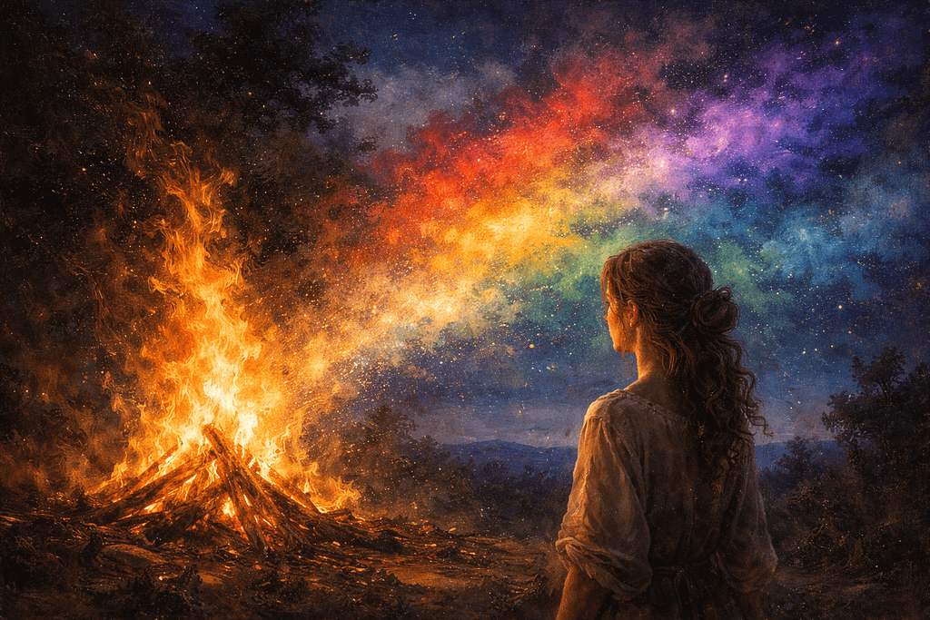 Muitas vezes tememos o fogo porque achamos que ele nos deixará de mãos vazias. Mas, na escrita, o fogo só consome o que é superficial. O que resta… A cinza, o resquício, isso é o solo fértil onde as cores realmente conseguem fixar. Sem a queima do ego, a cor é apenas tinta; com ela, a cor se torna identidade.