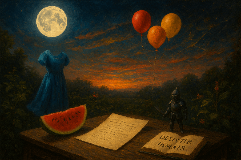 Se você encontrou esta carta, saiba que não foi por acaso. Eu a escrevi sob a Lua, usando um lápis azul emprestado por um poeta dissidente que jurava que minhas palavras teriam o poder de eclodir quando lidas por alguém corajoso.