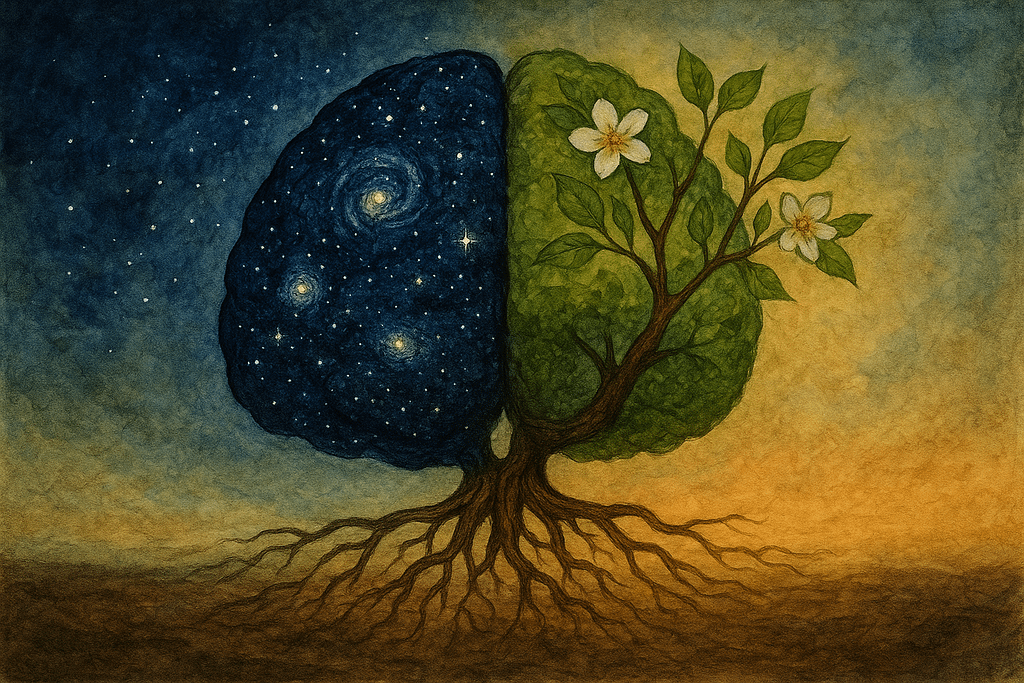 A Deusa da Terra, guardiã da escrita da cura, sussurra às crianças que o lápis pode ser raiz: fincado no papel, faz brotar dentro delas um jardim onde sentimentos encontram abrigo.