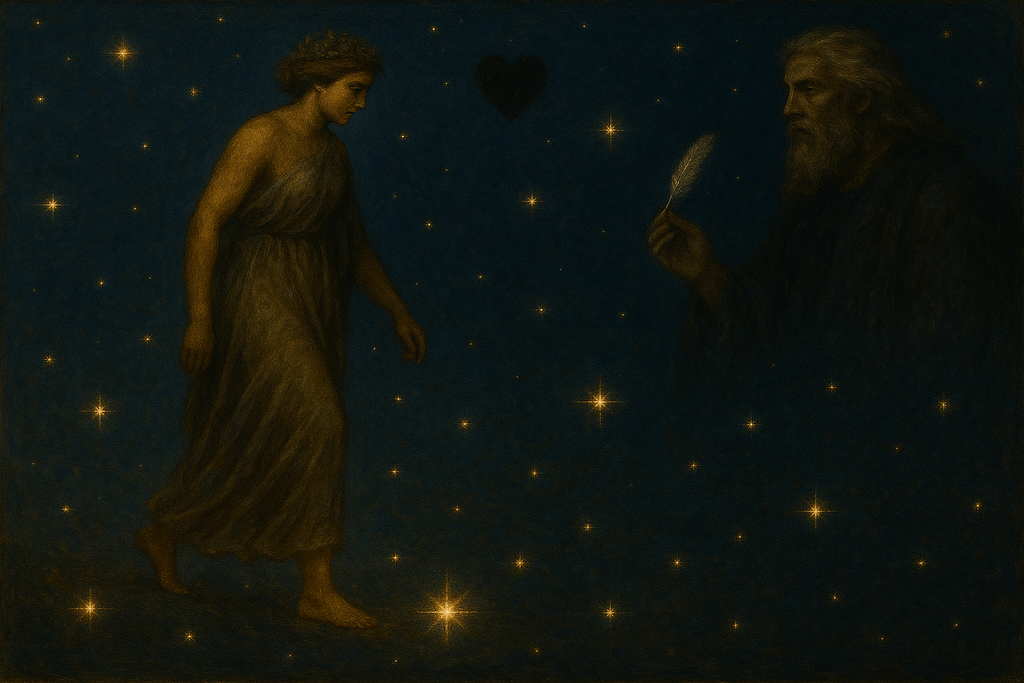 A Deusa da Terra caminha por entre essas estrelas sem medo de se perder. O Deus do Universo a observa, sabendo que cada treva tocada vira matéria de luz.