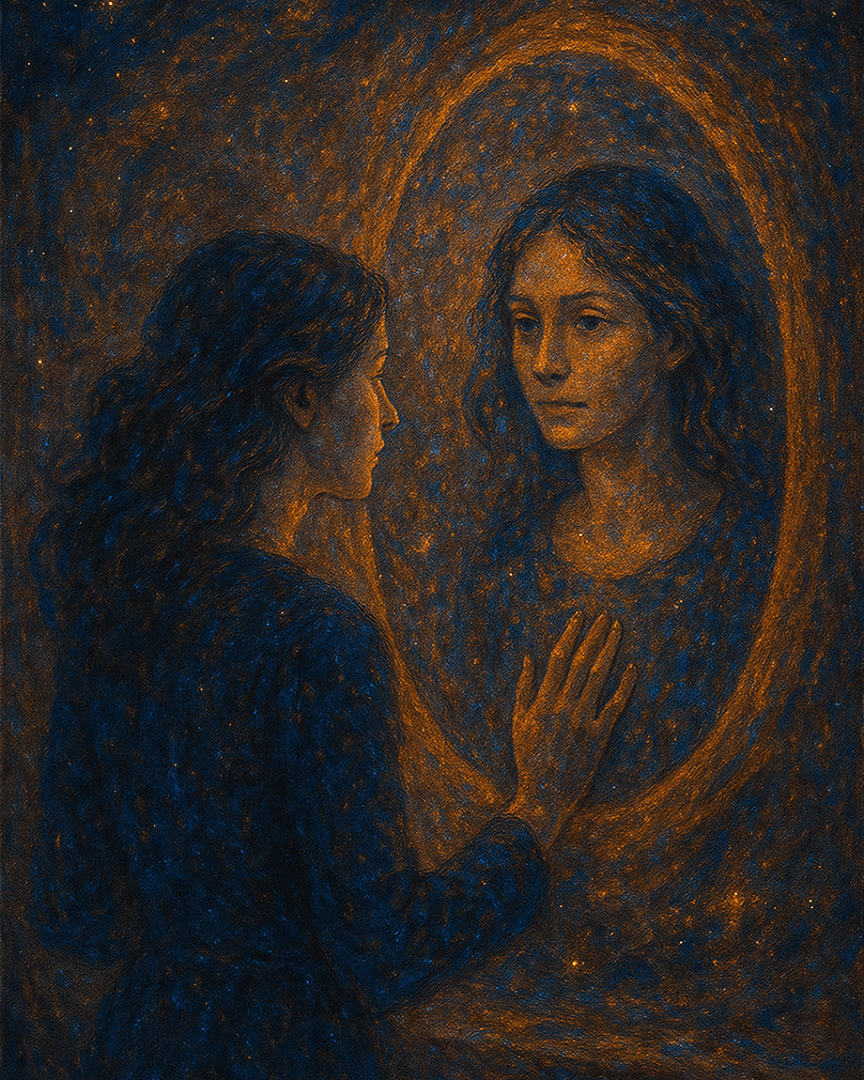E se aquilo que chamamos de “imaginação” for só uma memória de algo que já fomos ou que ainda somos em algum outro lugar? Hoje, te convido a atravessar o espelho comigo. Esse texto nasceu da vontade de olhar com mais ternura para os nossos “eus” não vividos. Às vezes, eles nos observam em silêncio, esperando que a gente se reconheça. Que esse conto te leve a reencontrar um pedaço esquecido ou inédito de si.