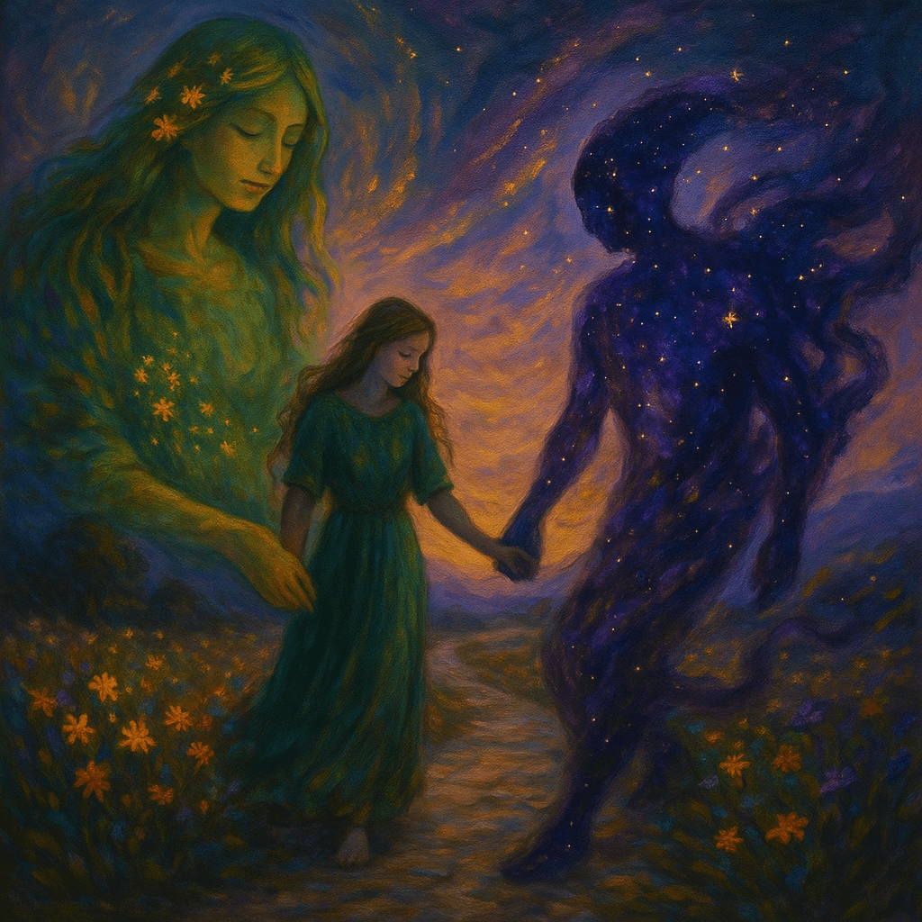 A Deusa da Terra segurou minha mão. Disse que toda fantasia é um lembrete. De quem fomos antes do medo. Antes da pressa. Antes de esquecer que imaginar também é um modo de lembrar.
