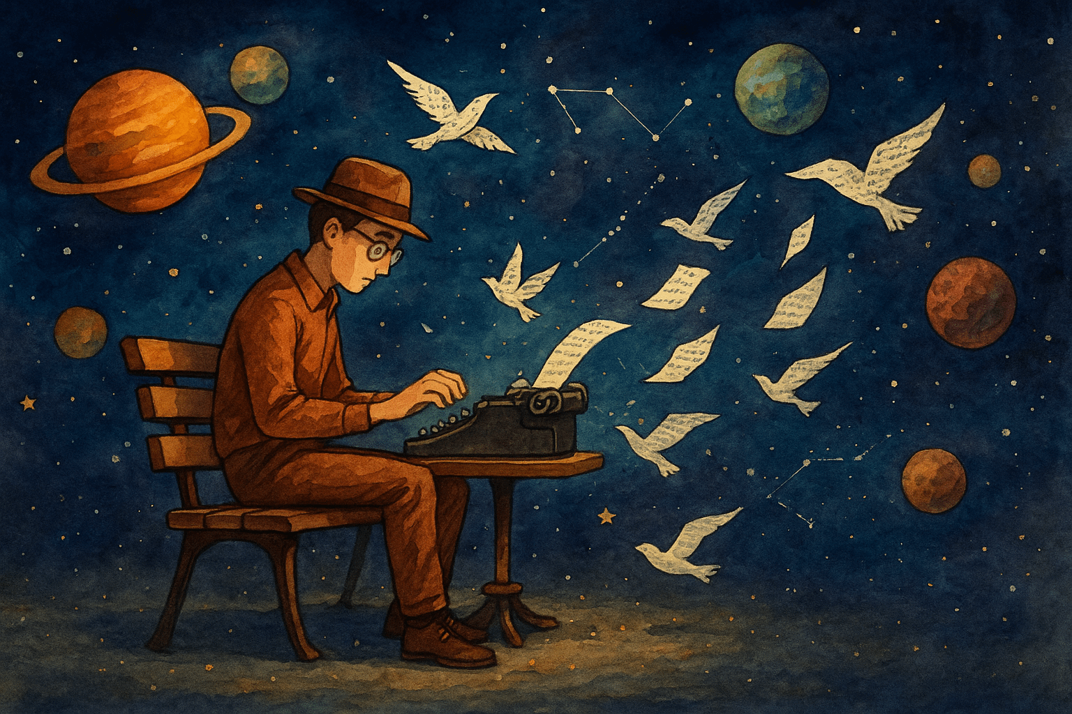 A escrita intuitiva é como observar constelações, pois elas não precisam estar alinhadas para formar algo belo. O sentido surge no todo, mesmo que as partes pareçam distantes.