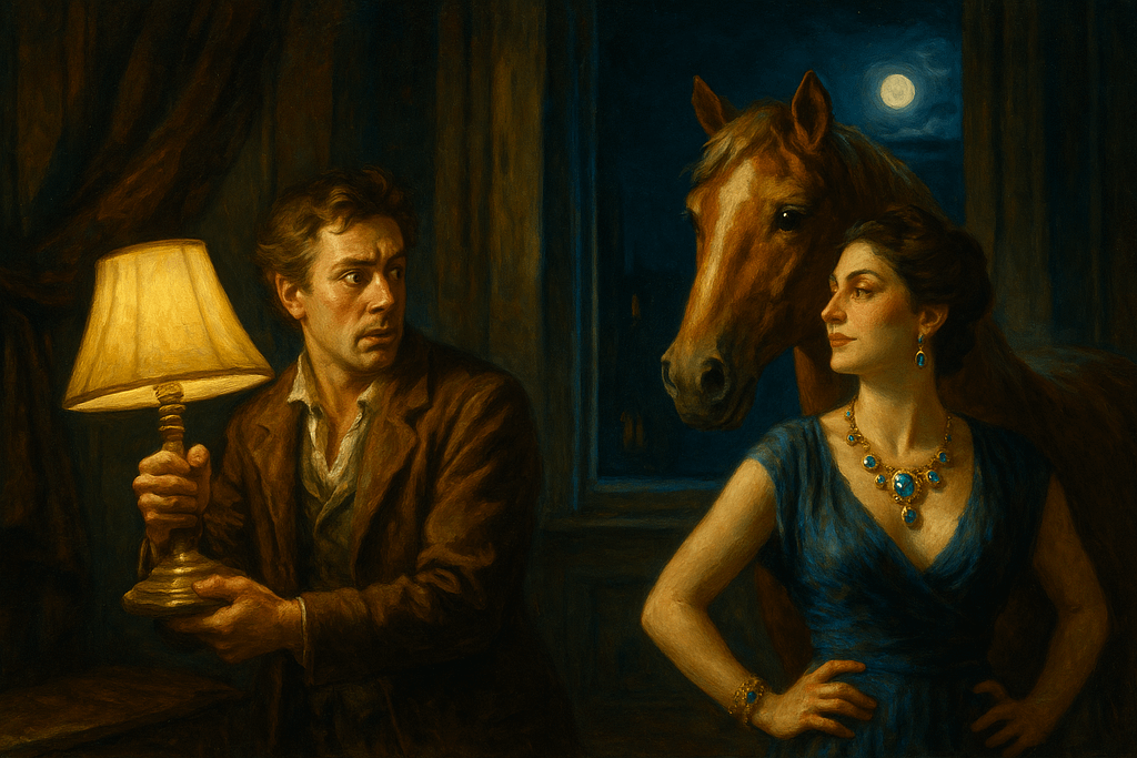 A sombra se moveu. Era Alice. E ela estava com um cavalo dentro de seu apartamento.