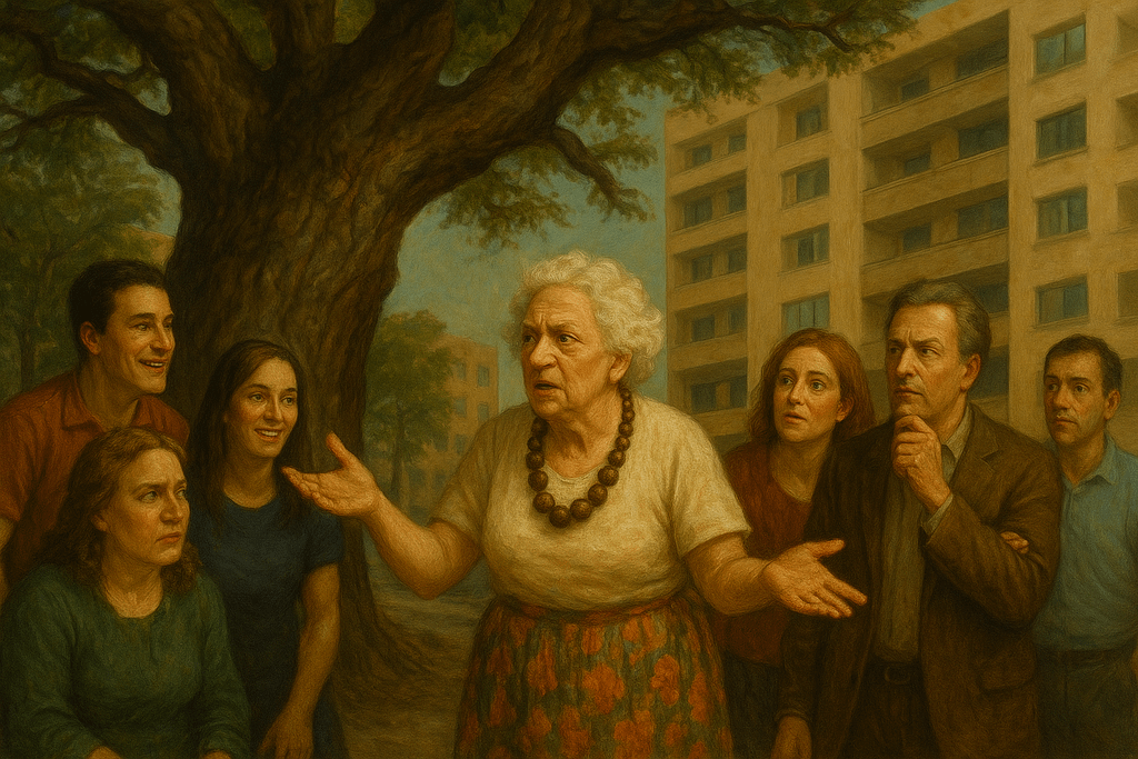 A escolhida foi a Vó Ritinha, que dizia ter “energia boa para plantas”. Lá foi ela, de saia florida, colar de sementes e voz firme: