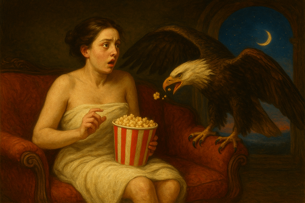 E foi aí que percebi que eu estava fazendo um discurso épico para uma águia que, na verdade, só queria roubar minha pipoca. Conclusão da noite? Sextou de verdade é quando até os animais resolvem entrar na farra e você precisa disputar o balde de pipoca com eles.