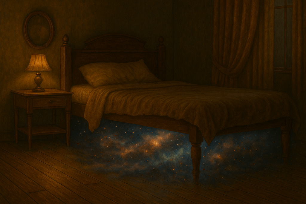 Luana nunca teve medo do escuro. O medo dela era mais específico: o que morava debaixo da cama. E, ao contrário do que os adultos diziam, ela sabia que não era imaginação. Havia alguma coisa ali embaixo. Não um monstro, nem um animal. Era como um espaço, maior por dentro do que por fora… Um universo.
